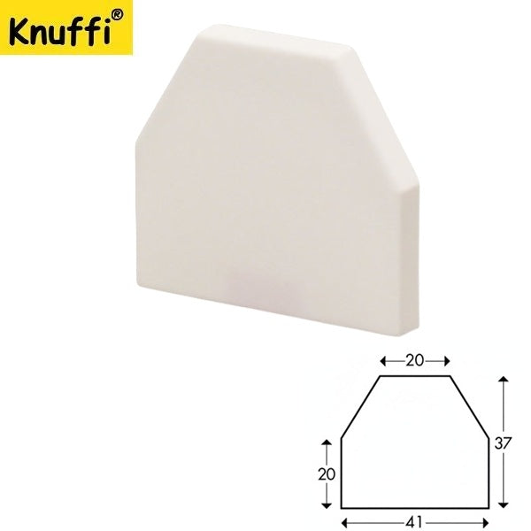Para polipropylenowych zaślepek przeznaczonych do profili ochronnych Knuffi typ CC. Zaślepki służą do zabezpieczenia porowatych powierzchni profilu powstałych po jego skracaniu, zapewniając estetyczne wykończenie oraz ochronę przed zabrudzeniem i uszkodzeniem. Wykonane z trwałego polipropylenu w kolorze białym, dostarczane w całości i gotowe do montażu.
