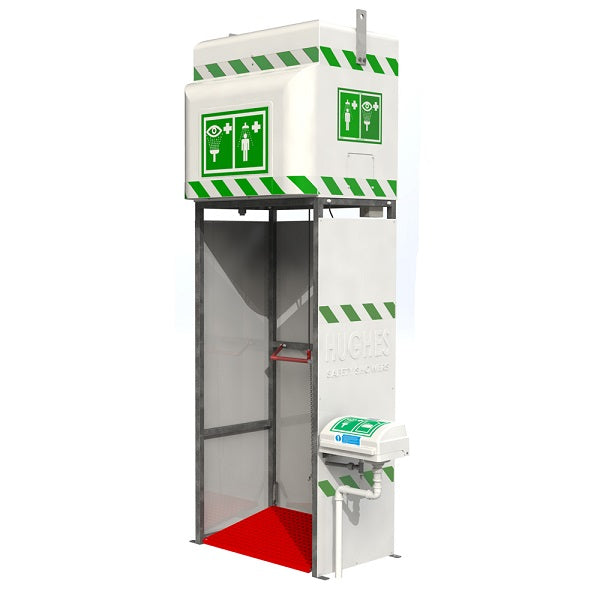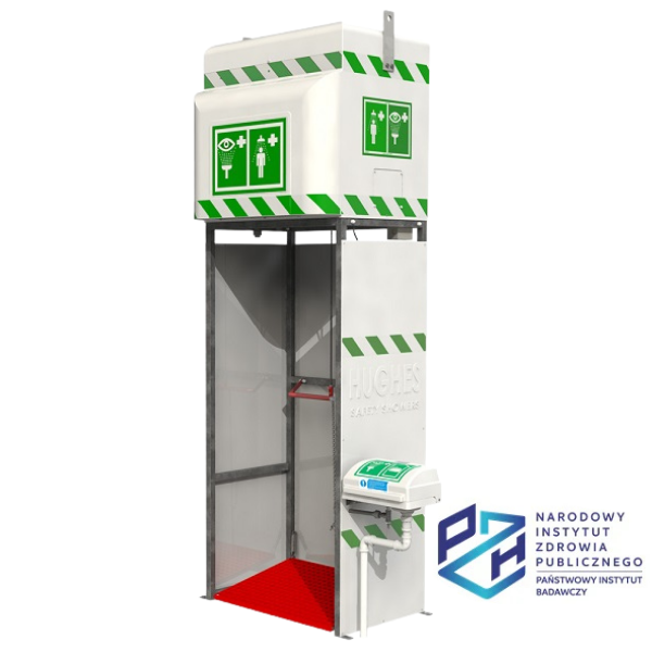 Kabina bezpieczeństwa, zasilana wodą ze zbiornika 350 l o wypływie grawitacyjnym. Spełnia wymagania norm EN i ANSI w wyniku podłączenia zbiornika kabiny do sieci wodociągowej. Zapewnia ochronę pracowników narażonych na kontakt z substancjami niebezpiecznymi. Przeznaczona do pracy w wewnątrz i na zewnątrz pomieszczeń w temperaturach powyżej 0°C.