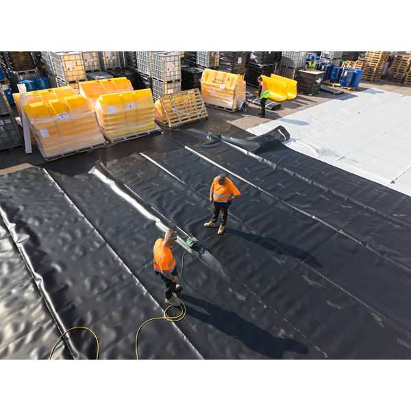 - Opcjonalnie dostępna wykładzina polietylenowa umożliwia skuteczne uszczelnienie dna zbiornika, zwiększając zabezpieczenie przed przenikaniem substancji niebezpiecznych do gruntu.