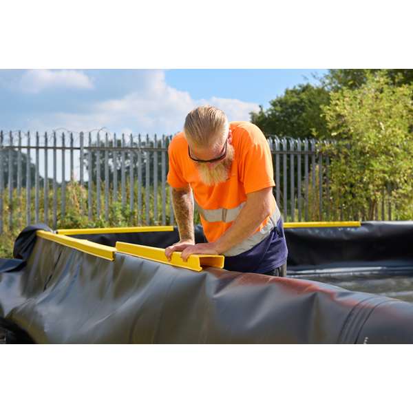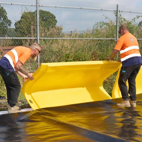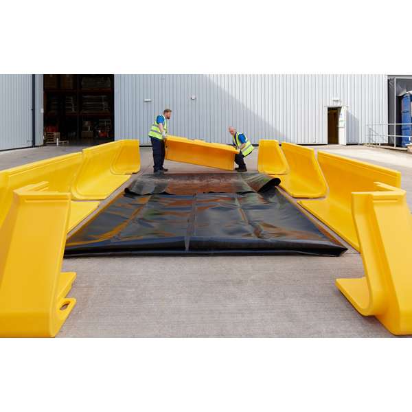 Zaawansowany system modułowych, twardych ścian zabezpieczających (SJ-800-001), narożników (SJ-800-101) oraz pokryw ścian (SJ-800-201) został zaprojektowany z myślą o skutecznym powstrzymywaniu rozlewów substancji chemicznych i ochronie środowiska na terenach przemysłowych. System wyróżnia się uniwersalnością zastosowania, łatwością obsługi oraz wysoką trwałością, dzięki czemu stanowi doskonałe rozwiązanie zarówno dla stałych, jak i tymczasowych zabezpieczeń na placach składowych, stacjach przeładunkowych, terenach budowy, w sytuacjach ratunkowych czy w rolnictwie.