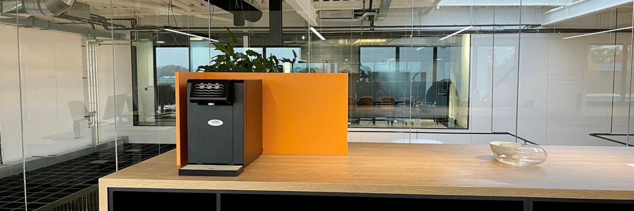 Kompaktowe i w całości wykonane ze stali nierdzewnej urządzenie, do ustawienia na blacie, które łączy nowoczesny design z funkcjonalnością na najwyższym poziomie. Dystrybutor chłodzonej wody pitnej, stworzony z myślą o eleganckich przestrzeniach biurowych, domowych oraz miejscach o ograniczonej powierzchni.