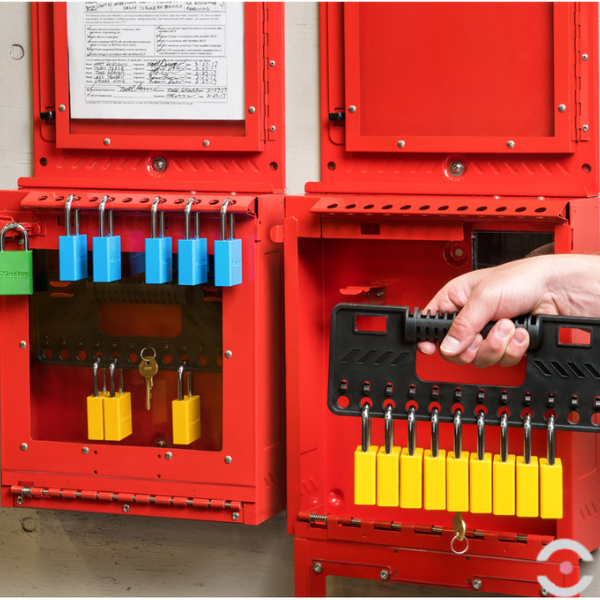 - W zestawie znajduje się wyjmowany uchwyt, który ułatwia przenoszenie kłódek do punktów odizolowania w trakcie procedury lockout.