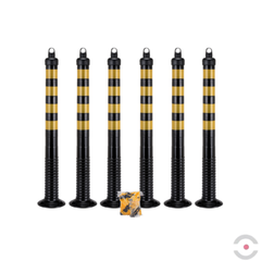 Zestaw elastycznych słupków przeznaczony do wyznaczania i zabezpieczania przestrzeni, takich jak parkingi, hale magazynowe, strefy załadunku czy ciągi piesze.
