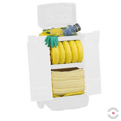 Zestaw mobilny wyposażony w chemiczne sorbenty polipropylenowe (żółte) przeznaczony jest do pochłaniania agresywnych chemikaliów oraz wszelkich rodzajów cieczy – od płynów przemysłowych po produkty ropopochodne. Mobilna forma zestawu zapewnia natychmiastowy i wygodny dostęp do sorbentów o różnorodnych kształtach, co istotnie wpływa na skuteczność i szybkość reagowania podczas usuwania rozlewów lub awaryjnego ograniczania niebezpiecznych wycieków.