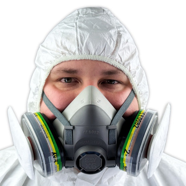 - Zadania, w których niezbędna jest ochrona klasy ABEK1 oraz P3 przy wykorzystaniu półmaski OxyPro X6 wyposażonej w pochłaniacze i filtry przeciwpyłowe