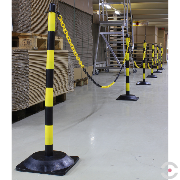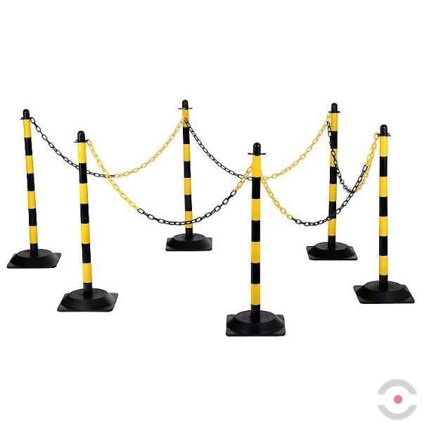 - W zestawie znajduje się także 6 podstaw o średnicy 265 mm z polietylenu, które służą do zamocowania słupków - dzięki czemu, można łatwo i sprawnie wygrodzić niebezpieczną strefę