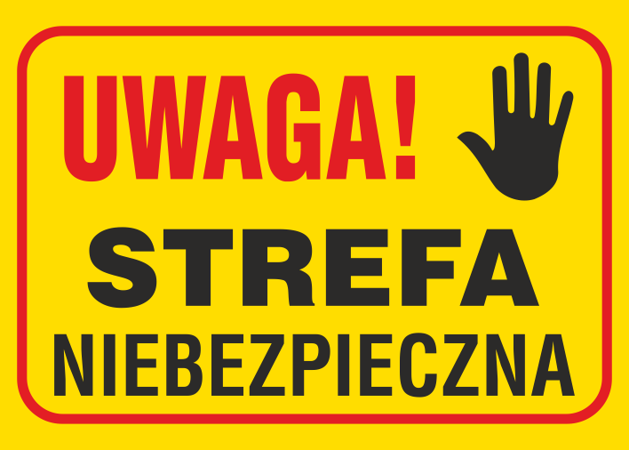 Tablica budowlana ostrzegawcza wykonana z PCV . Żółte tło z nadrukiem koloru czarnego i czerwonego. Znak w rozmiarze 25 cm x 35 cm.
