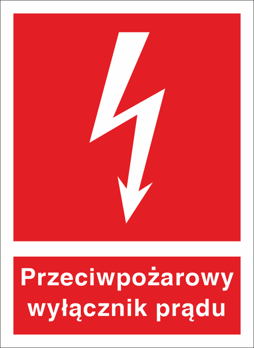 Znak przeciwpożarowy informujący o wyłączniku prądu to symbol, który wskazuje miejsce, w którym znajduje się urządzenie do odłączenia zasilania elektrycznego w przypadku pożaru lub innego zagrożeni...